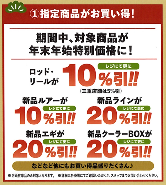 在庫品に限り、普段値引きをしない商品も対象になります!